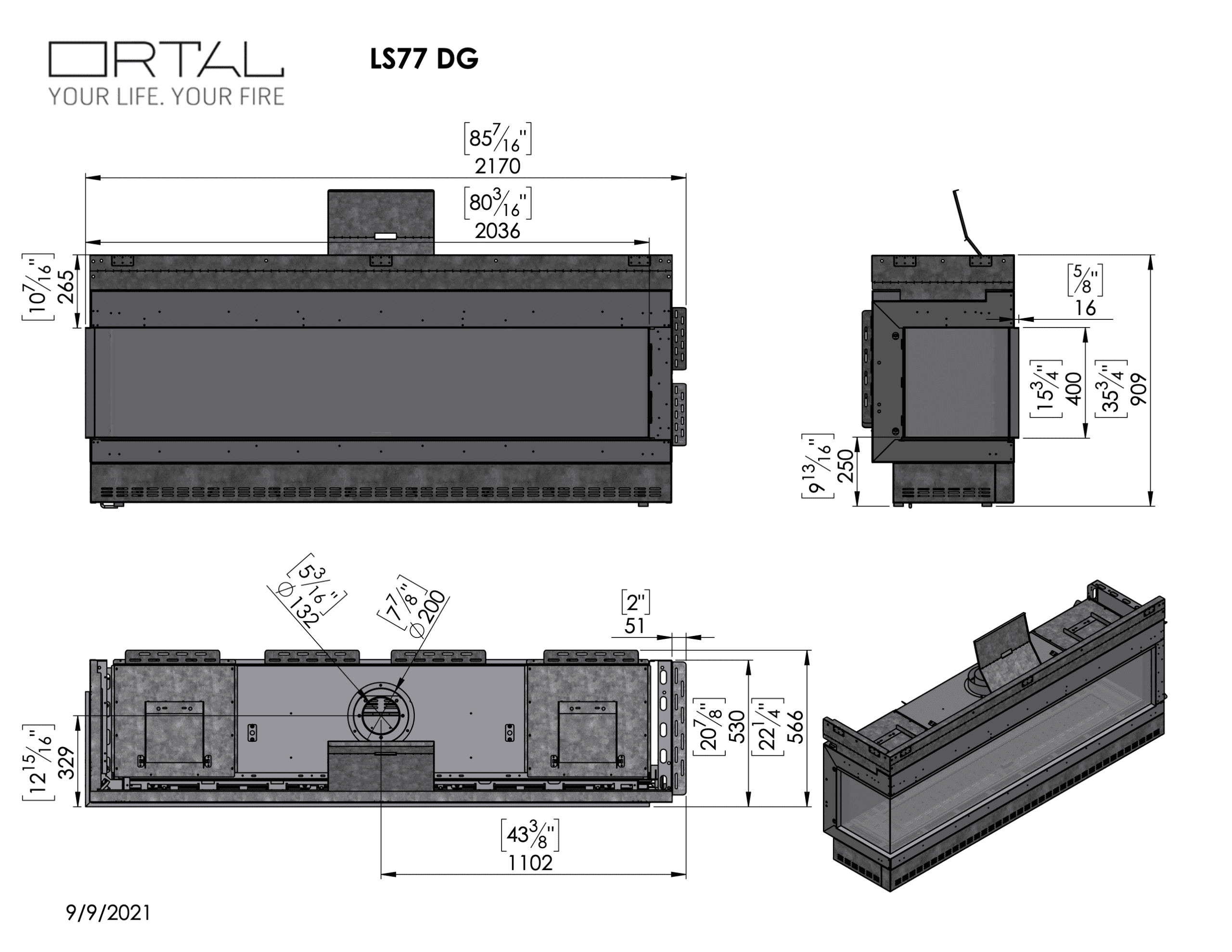 Reykrör: Ø 200 mm / Ø 132 mm