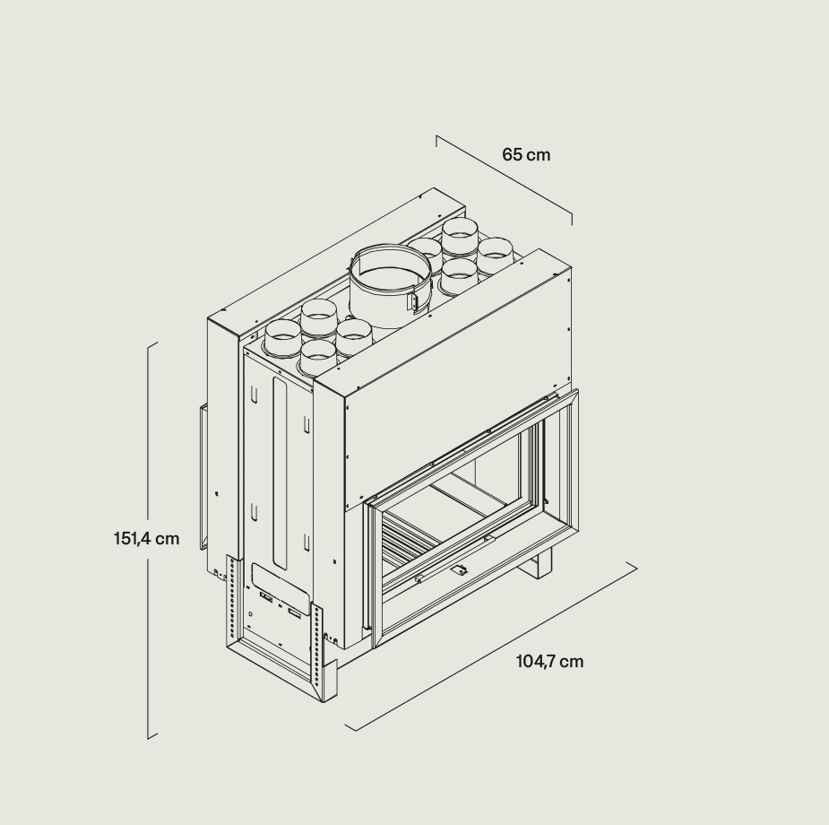 • Double-sided fireplace, one side with a sliding and drop-down door, and the other side with a drop-down door for cleaning the glass.