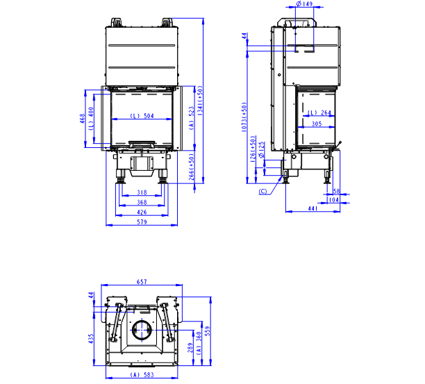 - exclusive three-sided glazing for maximum enjoyment of the fire