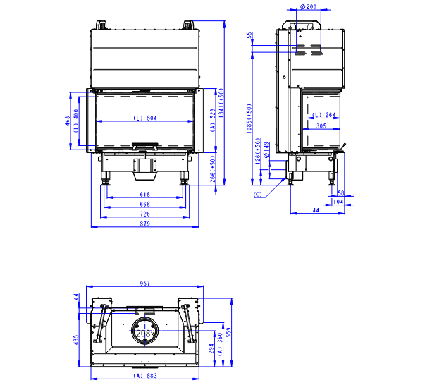 • exclusive three-sided glazing for maximum enjoyment of the fire