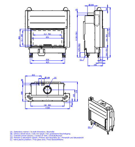 - chamber without grate – grate and ashpan is an option on demand