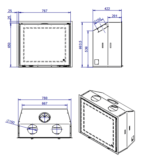 Stærð (WxDxH): 781 x 422 x 663,5 mm