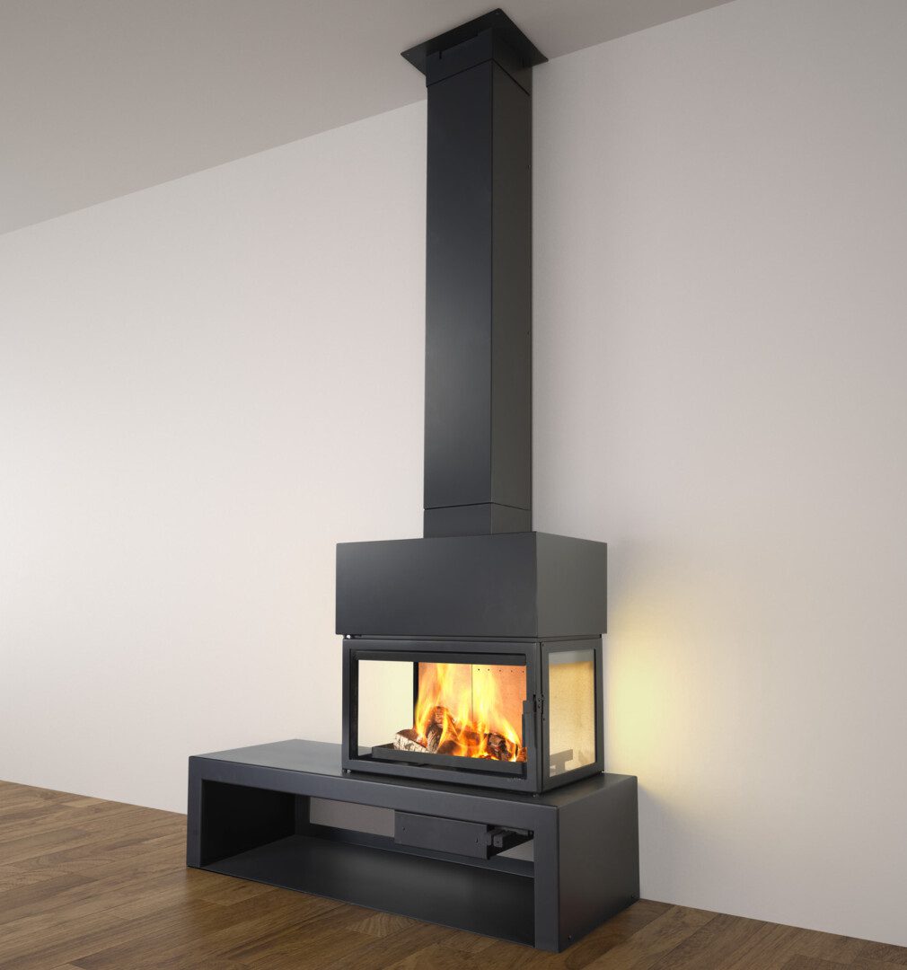 frístandandi viðarkamína – 3 gler