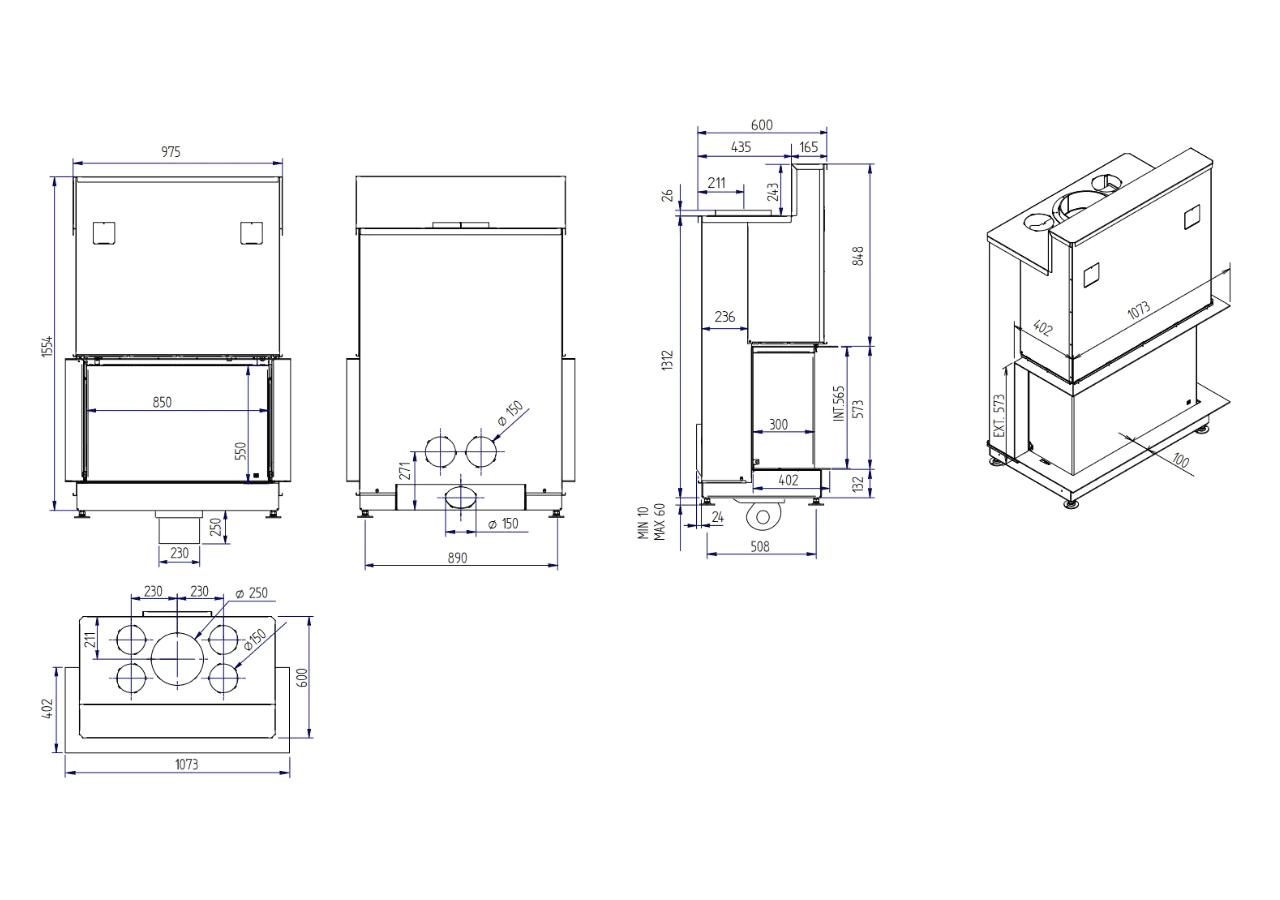 Stærð (WxDxH): 975 x 600 x 1554 mm