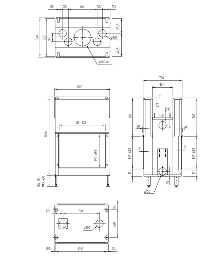 Stærð (WxDxH): 1100 x 748 x 1666 mm