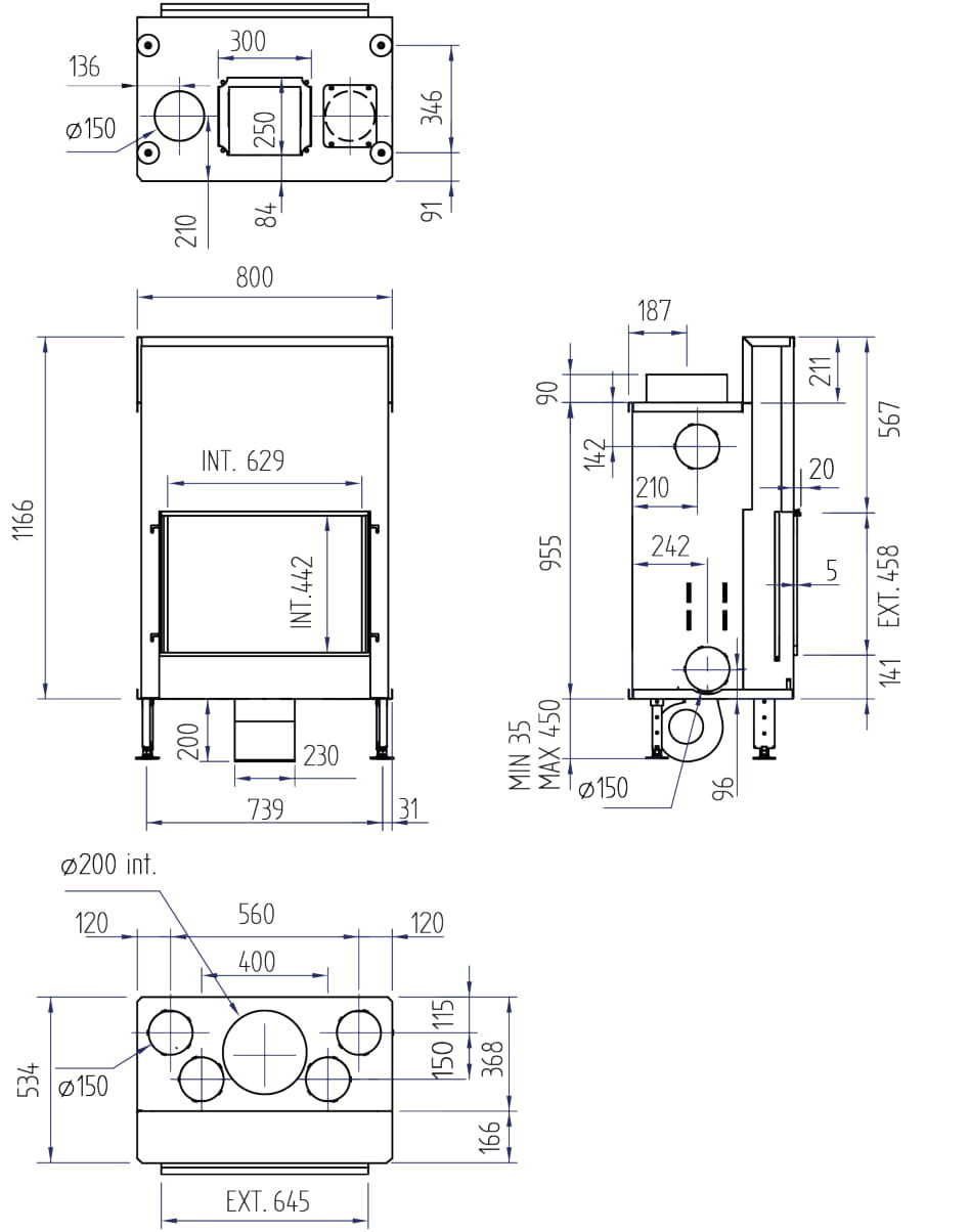 Reykrör: Ø 250 mm