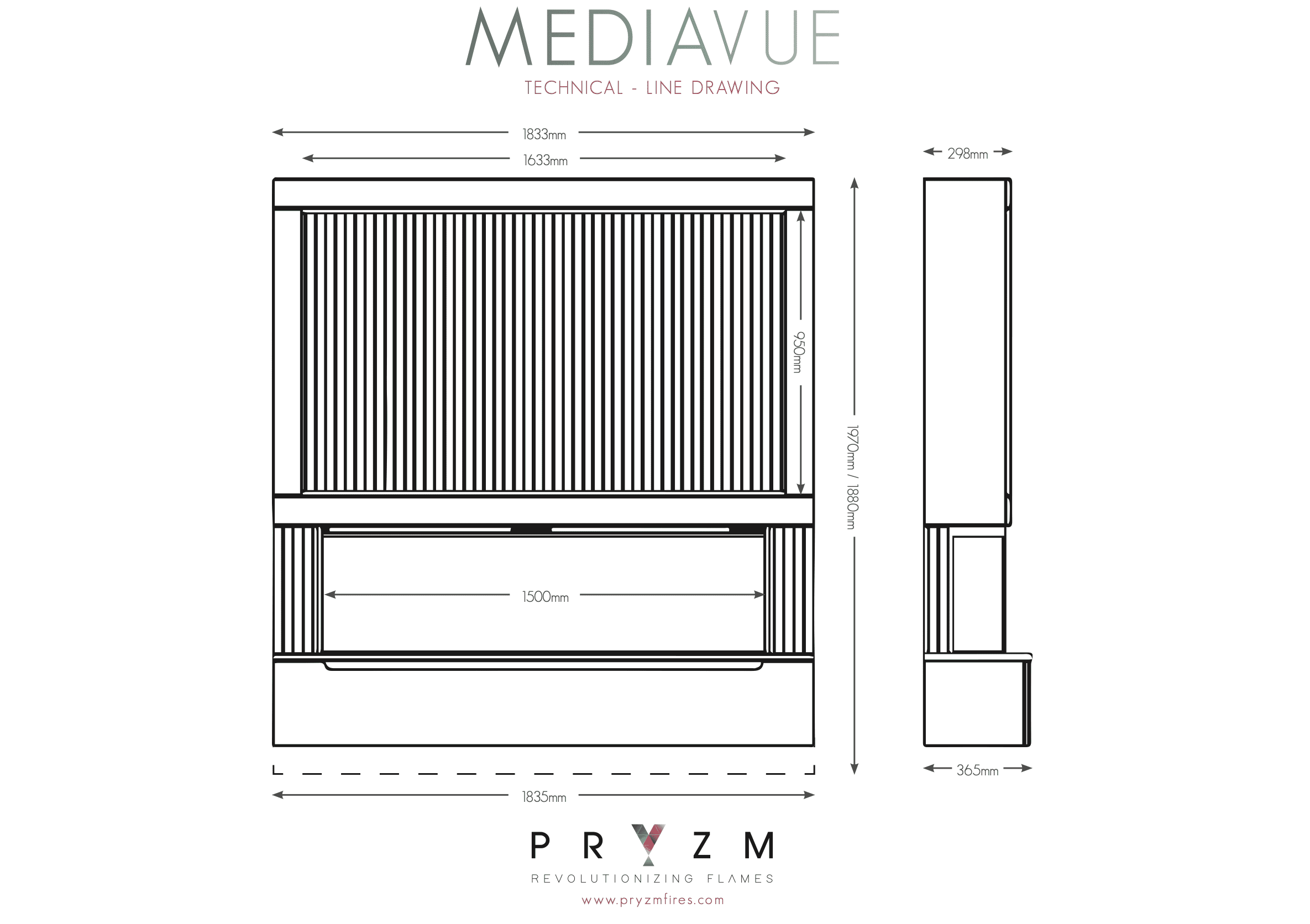 The MediaVue is a pre-built media wall fireplace with a unique DIY installation offering a premium construction & finish, including a luxurious 1.5m wide 3 sided electric fire. Designed and built by BeModern Ltd. who have been manufacturing bathroom furniture and electric fires for over 60 years, rest assured, the quality is unparalleled.