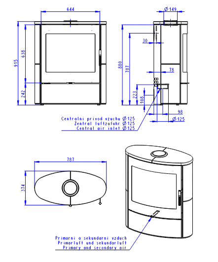 A sensitive fusion of all the major stove dimensions has resulted in a unique design. The rounded and unique dimensions of the glass provide a large area for direct observation of the flames.