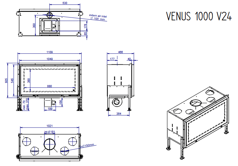 Þessa kamínu má setja upp bæði sem innbyggða og sem frístandandi kamínu.