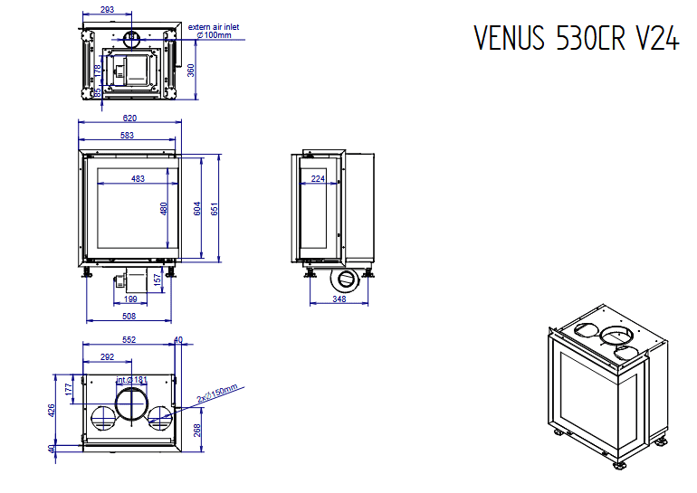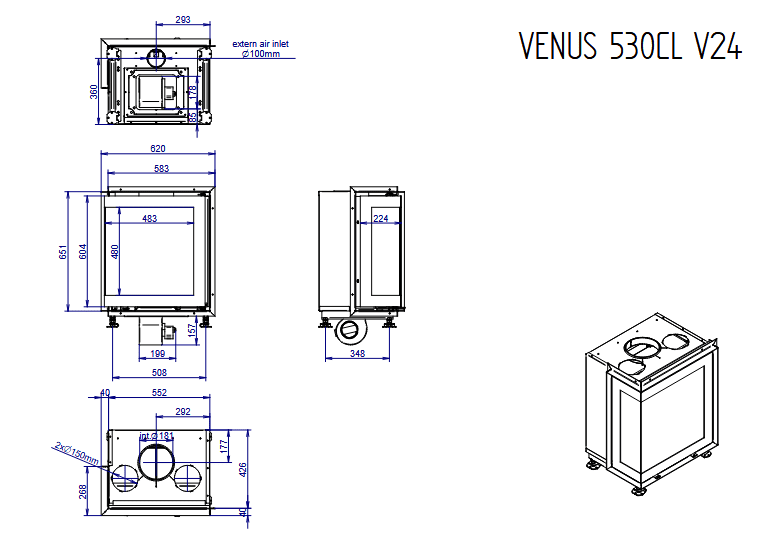 Þessa kamínu má setja upp bæði sem innbyggða og sem frístandandi kamínu.