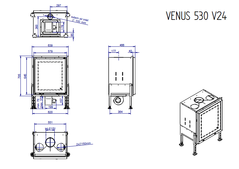 Þessa kamínu má setja upp bæði sem innbyggða og sem frístandandi kamínu.