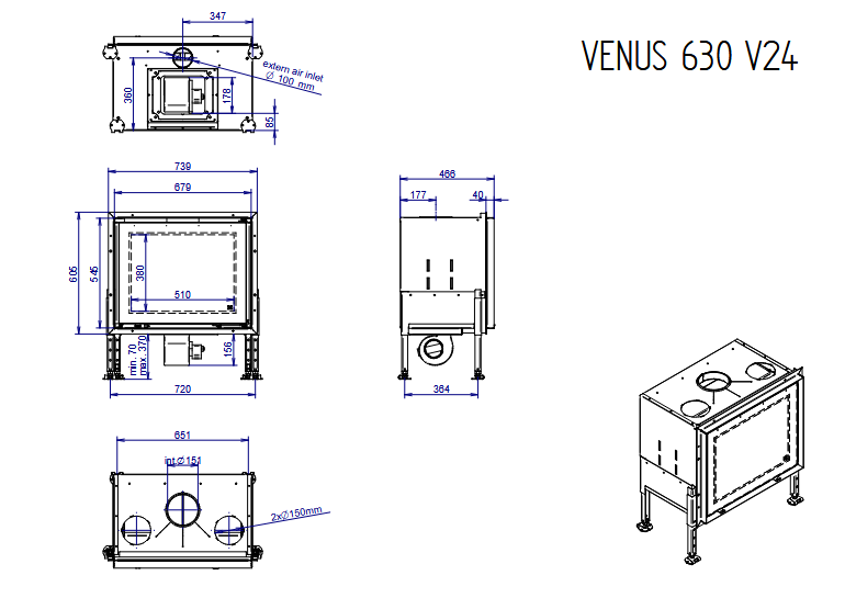 Þessa kamínu má setja upp bæði sem innbyggða og sem frístandandi kamínu.