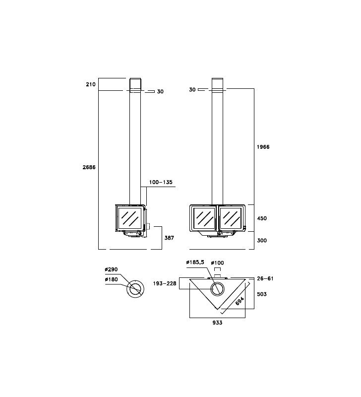 Architectural, refined and compact, it fits in anywhere. Its double front offers a clear view of the fire. Vertex is modern and contemporary.
