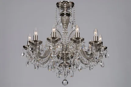 Kristal ljósakróna 10 ljósa – kristal armar silfurhúðaðir